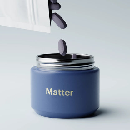 Matter is designed to support long-term brain health with a specific combination of B-vitamins (B6, folic acid and B12) that was shown in a clinical study to slow age-related brain atrophy associated with mild memory concerns, omega-3s, and a bilberry extract that is rich in plant-based antioxidants called anthocyanins. All of these ingredients have been shown, through a combination of epidemiological research and clinical trials, to support brain function.The B-vitamin complex plays an important role in maintaining normal metabolism of the amino acid homocysteine. High homocysteine levels are associated with advanced age and have been shown to correlate with the rate of brain atrophy in healthy adults. In the University of Oxford's VITACOG study, two-year supplementation with the B-vitamin complex was shown to effectively lower homocysteine levels and slow age-related brain atrophy in 168 older people with mild memory concerns. Other studies of shorter duration have indicated that the effect of B vitamin supplementation on homocysteine levels occurs in the order of a few months.
