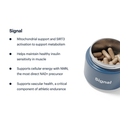 The combination of ingredients in Signal is designed to promote metabolic health, whereas Basis is formulated to target overall cellular aging and DNA maintenance. As metabolic aging is tightly correlated with general aging, there is overlap in the downstream effects of the ingredients in Signal and Basis, and this is reflected in the principal ingredient in both products. As declining NAD+ levels are directly related to general aging and metabolic dysregulation, both Signal and Basis provide an NAD+ precursor molecule to target this decline–Signal contains NMN and Basis contains NR. There is some exciting, early evidence for potential tissue-specificity between the two different NAD+ precursors, as well as varied benefits, suggesting that one precursor may be more dominant in certain tissues than the other. More studies are needed to support this possibility.